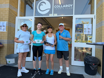 At 4pm, players were called from the court for the presentation of prizes which included 18 holes of golf for 4 players, with carts, from our good friends at Long Reef Golf Club, a gift voucher from Gillian Adams Salon, Spa, Dining, hospitality vouchers from local venues including The Collaroy, Dee Why RSL, the Beach Club Collaroy and GurTaj Indian Restaurant, a brand-new HEAD tennis racquet and racquet bag, coaching lessons from our mates at Evolve, tickets to a Sea Eagles home game, with additional jacket and cap donated by Committee Member Glenn, hampers from TJX Australia and Heinemann Oceania, and more! In all we gave away prizes valued at nearly $3,000!